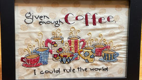 Dec 5, 20241 min readHand-made, Framed Cross Stitch “ Given Enough Coffee, I Could Rule The World” $90